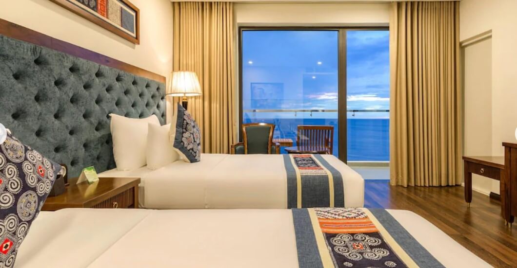 미케 비치가 바로 보이는 호텔로 시내에서 차로 10분 정도 거리에 위치라고 있으며 객실에는 발코니가 있고 루프탑 수영장에서 미케 비치를 보며 여유로운 시간을 보낼 수 있으며 아이들을 위한 놀이방도 따로 준비되어 있어 아동 동반 가족여행에 제격인 호텔입니다. 1박에 5-6만 원으로 여행객들의 만족도가 높은 곳입니다.