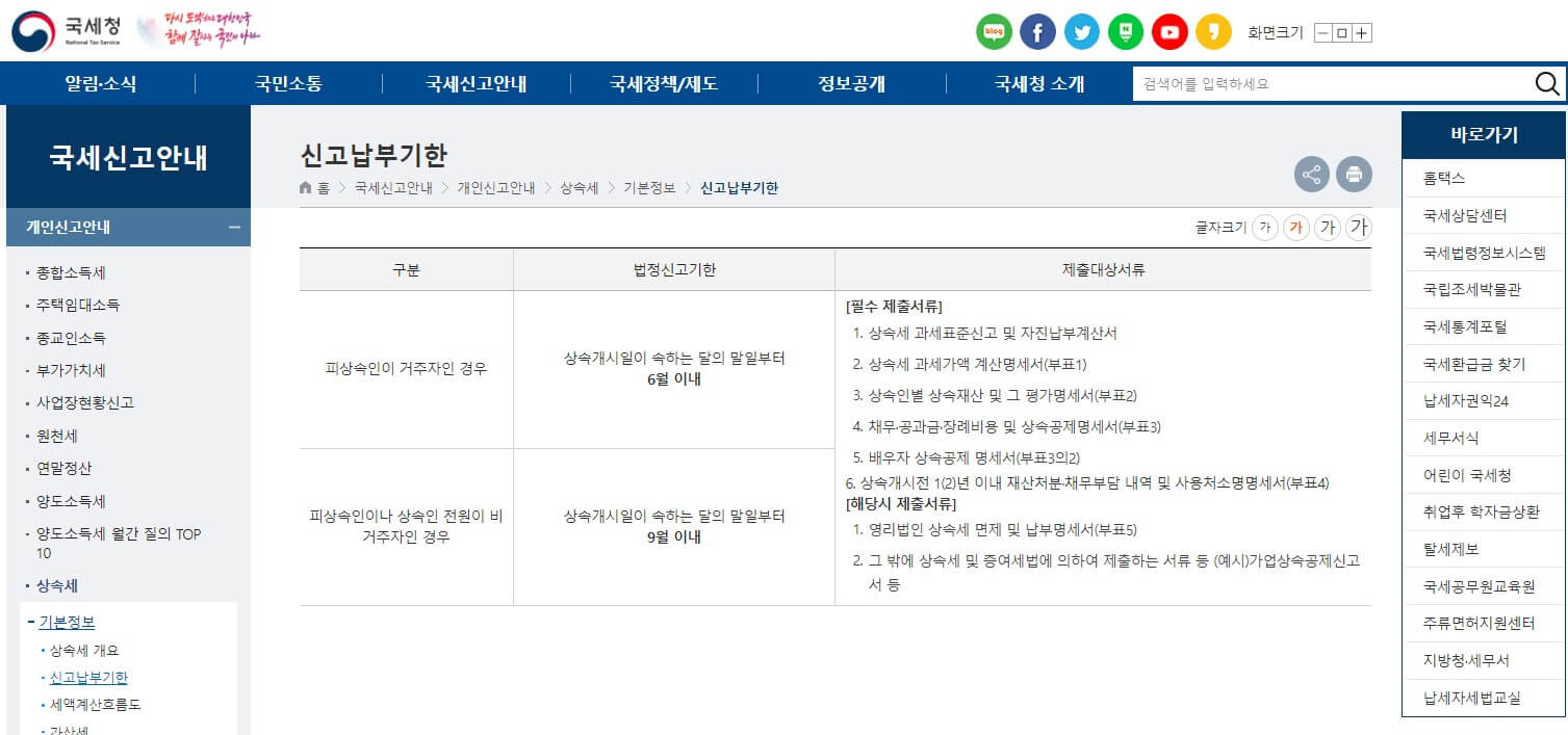 출처 - 국세청 5. 상속세 신고 납부 기한