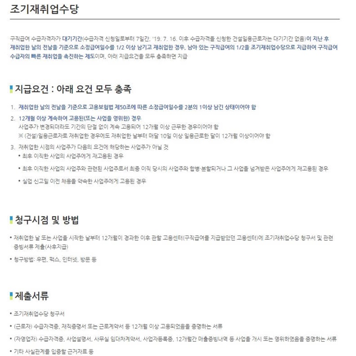 단, 재취업 후 12개월 이상 근무한 경우 12개월을 경과한 시점에서 조기 재취업수당을 청구할 수 있습니다.