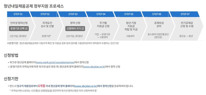 워크넷 홈페이지에서 신청 후 청년공제 청약 홈페이지에서 청약을 신청하는 시스템.